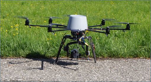 Die Nutzlast, zumeist Optiken für Bild- und Video, aber auch in Kombination mit Thermal und anderen Sensoriken, wird in einem Trägersystem unterhalb der Avionik des Multikopters aufgehangen und ist lagestabilisiert. Die Sensoriken werden in der Regel über das Flugkontrollsystem nachgeführt bzw. vordefiniert gerichtet.